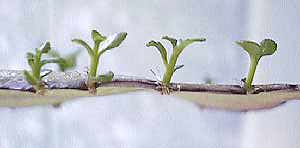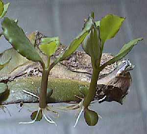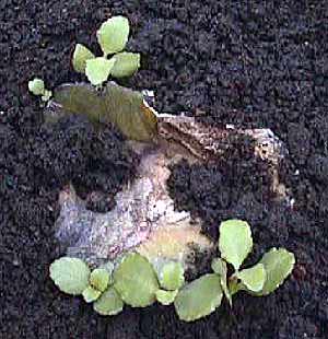 1号は相変わらず。2号はみどりの部分がくすんできて、根も枯れ始めたので鉢に植えることにした。