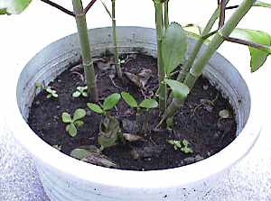 1号、2号ともに鉢から出るほどに成長。根元の葉が落ちてその葉からも芽が出ている。