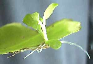 左は元から出ていた根。右は水栽培を開始してから出て来た根。3日半で1cm以上に。