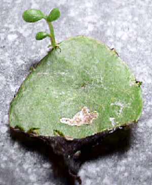 根が出て来た所から芽も出て来た。その両脇からも小さが芽が。