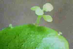 2箇所から発芽。始めから出ていた芽が大きくなったので鉢へ移す。