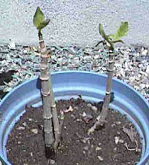 左が6号、右が4号。6号は2本の茎から葉っぱがでた