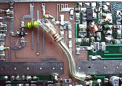 - Power supply point showing photo 12 is out side of RF and IF shield case. A bias resistor R should be covered with tube to insulate the shield case. Form the resistor lead going through the shield case hole and solder it to the power supply point. Solder the another side of the resistor lead to MMIC output pin. A choke L may be put between the resistor and MMIC output pin.