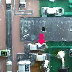 - Tear a part of the pattern showing red arrow on photo 10. The RF AMP circuit is located here.