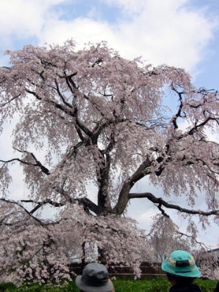 全体はこんな感じよ・・・ 枝垂れ桜って優雅な感じがしま せんか? 周りで宴会の方々はまったく 優雅とは無関係に見えるけど。 |