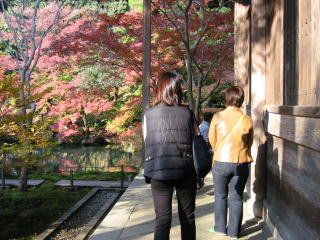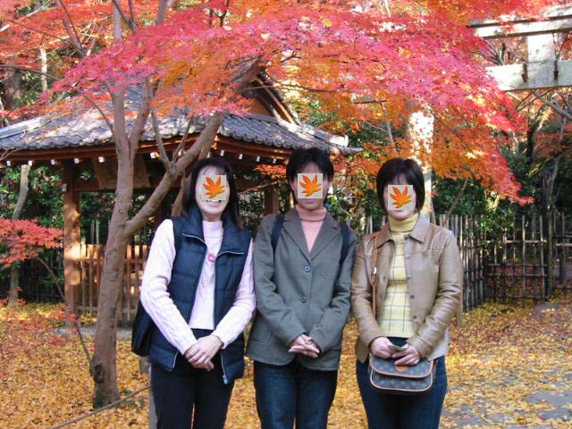 | ここは、八瀬の手前で下車して(駅名は?) 洛北は“蓮華寺”へ・・・・。 とても小さいお寺なのであまり有名ではな いかもしれないが、しっとりしていて良いお 寺です。 門を入ったところでパチリ! お友達3人の顔はあまりに適当ですが消 しています←いいかげんなヤツなんです、 この管理人(^v^) |