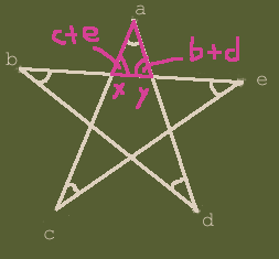 ∠a + ∠b + ∠c + ∠d + ∠e = ?