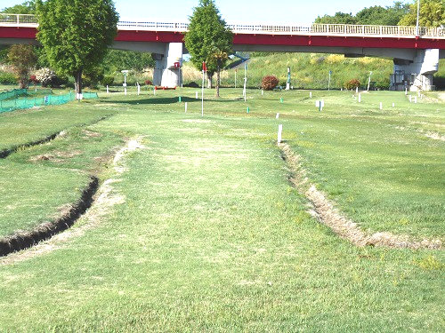 熟練プレイヤーをも悩ませるのがここの第1打。中央線を僅か左に優しく当てる。強過ぎても、弱すぎても、右も、左も、OBに転がり込む。