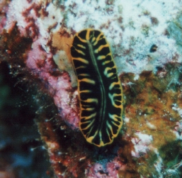 サンゴについているのをよく見かけるヒラムシですが、この時は岩場を移動していました。