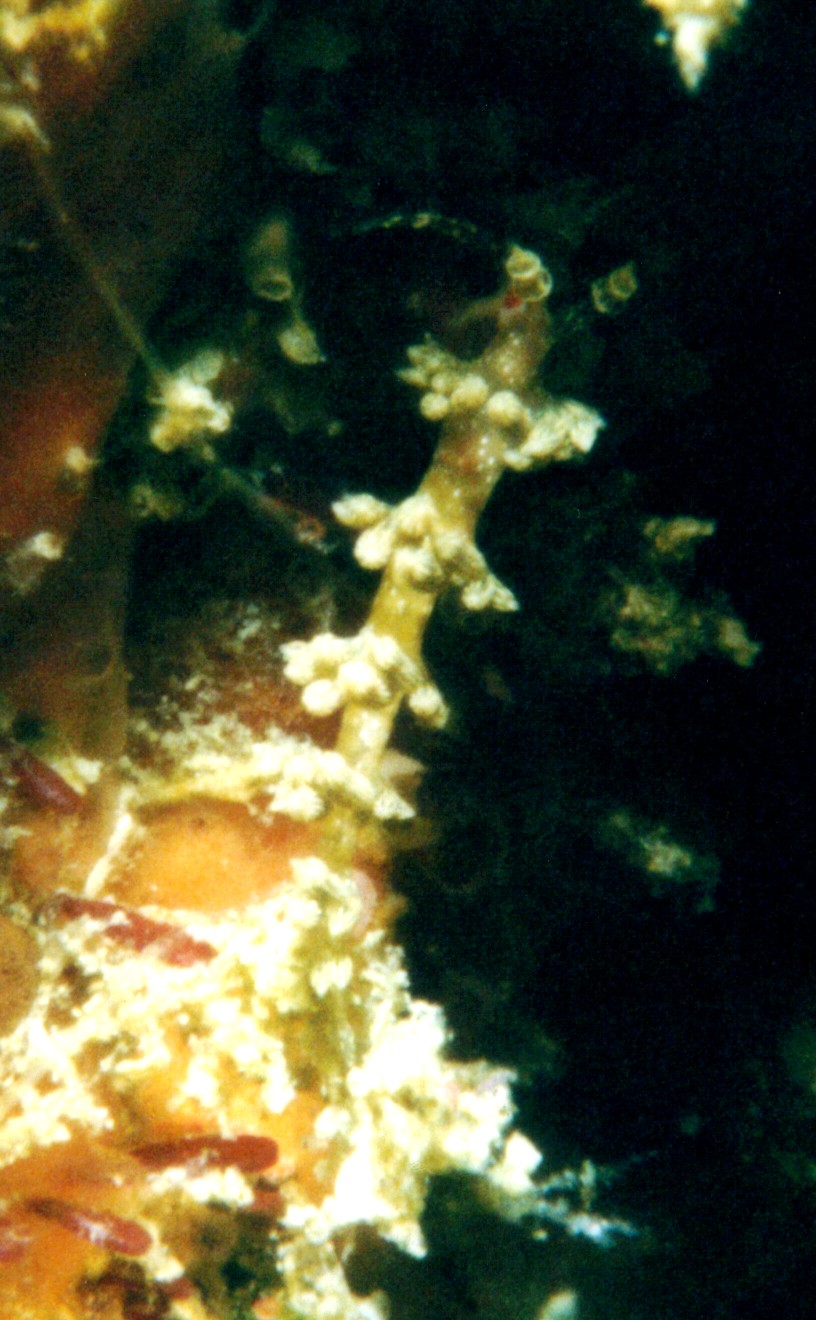 体長15mmほどの個体。ミノウミウシの仲間は体が細く、しかもこのように背中の突起の短いものはカメラのフォーカスを