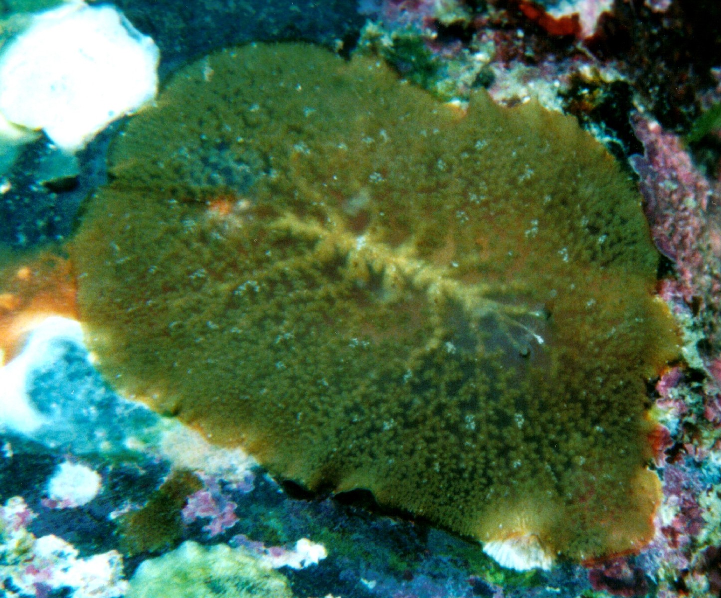 これもいろいろと調べてみたのですがわかりませんでした。このような形のウミウシにしては触角が特徴的で、中心