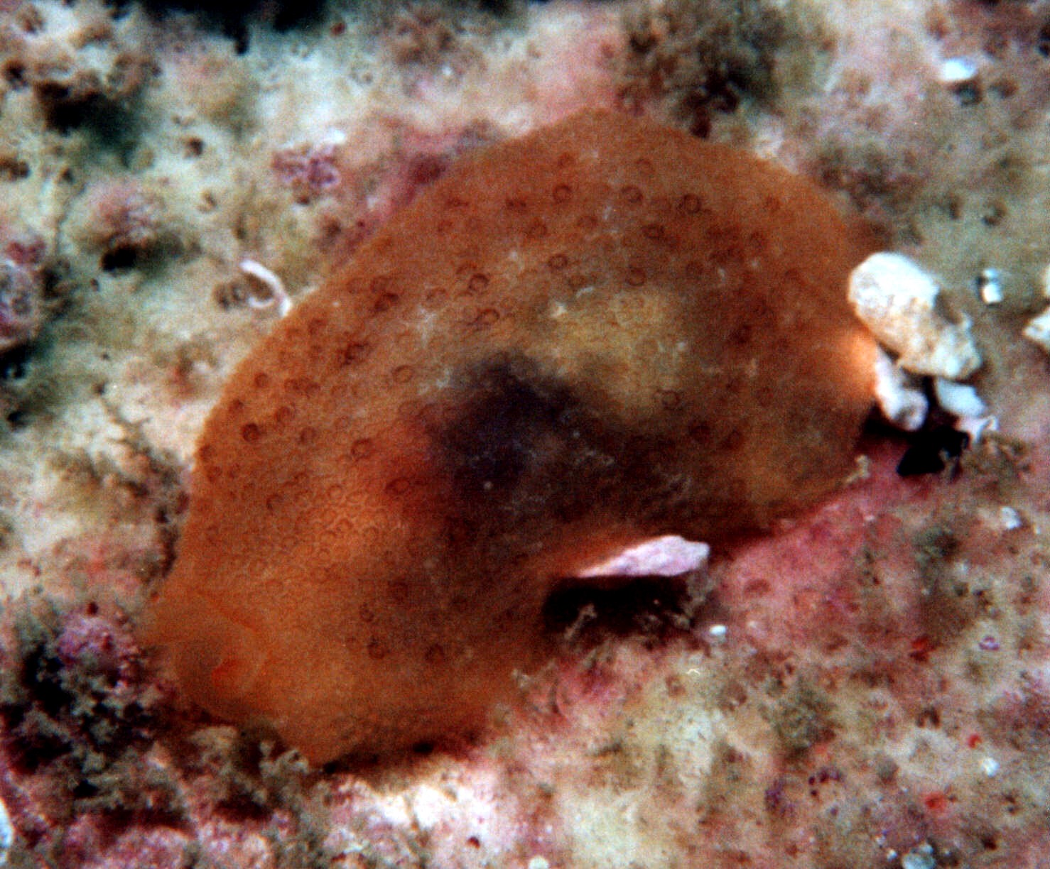 体長3cmほどの個体。やはりこれも死サンゴの裏から見つかりました。前掲の個体とは体表のツブツブ感も違うし、これは体色も薄く
