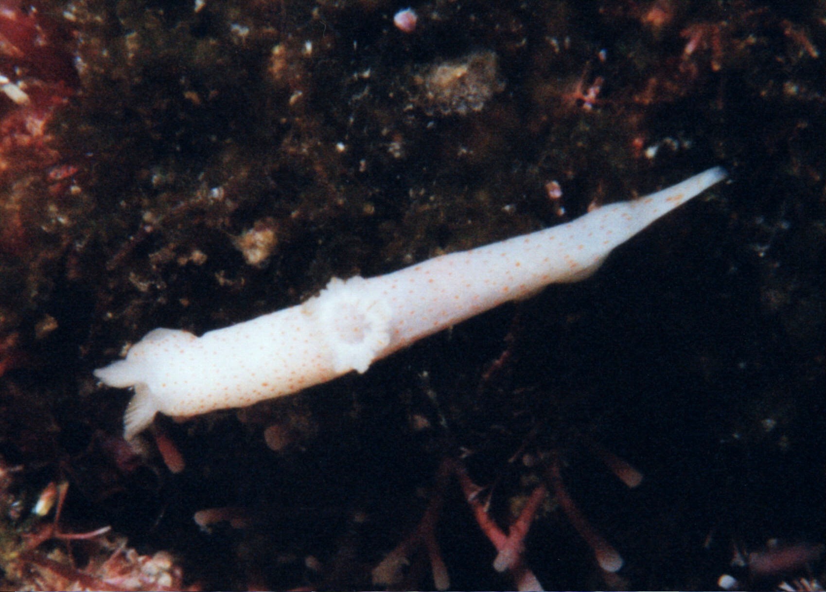 アカボシウミウシのように触角を結ぶ赤いラインが見えないこと、触角と二次鰓が白いことなどからこれとしました。でも実はまだ