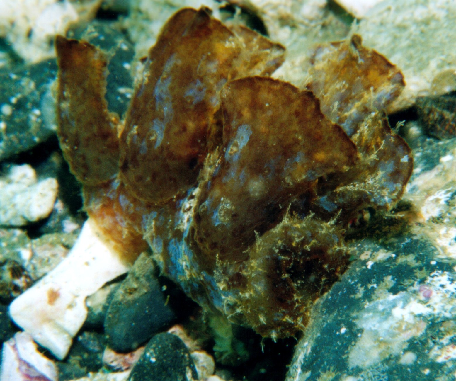 体長10cmほどの個体。色もきれいではないし、ウミウシの人気ランキングを取るとたぶん最下位になるだろうと