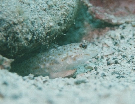 このテのハゼが、このように石の陰にいるのは珍しいんじゃないかと思いますが、その分、同定に