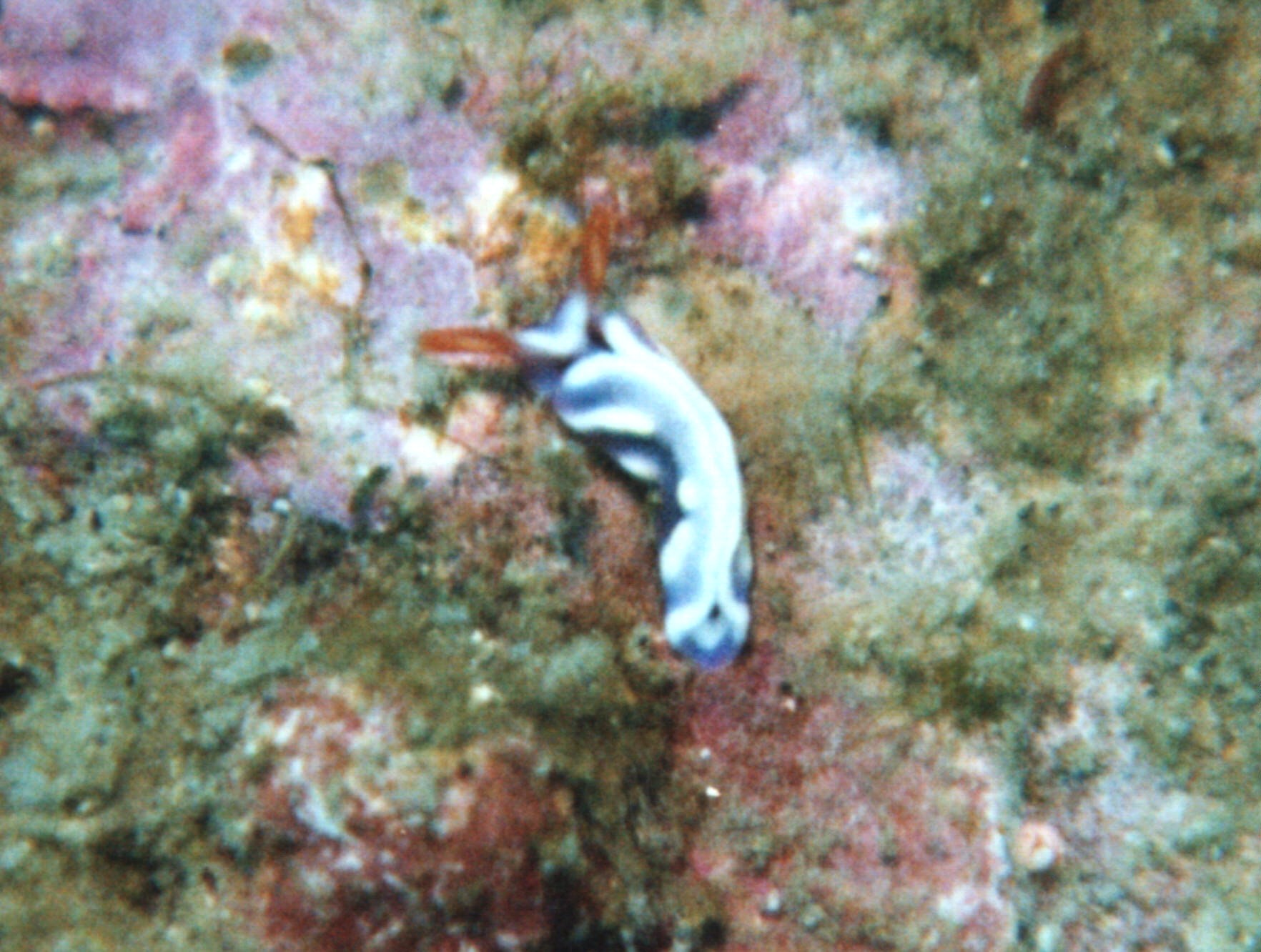 確認すると、ミドリガイの仲間であることがわかりました。海の中では触角の色ははっきり分かったのですが、体色は白に青と