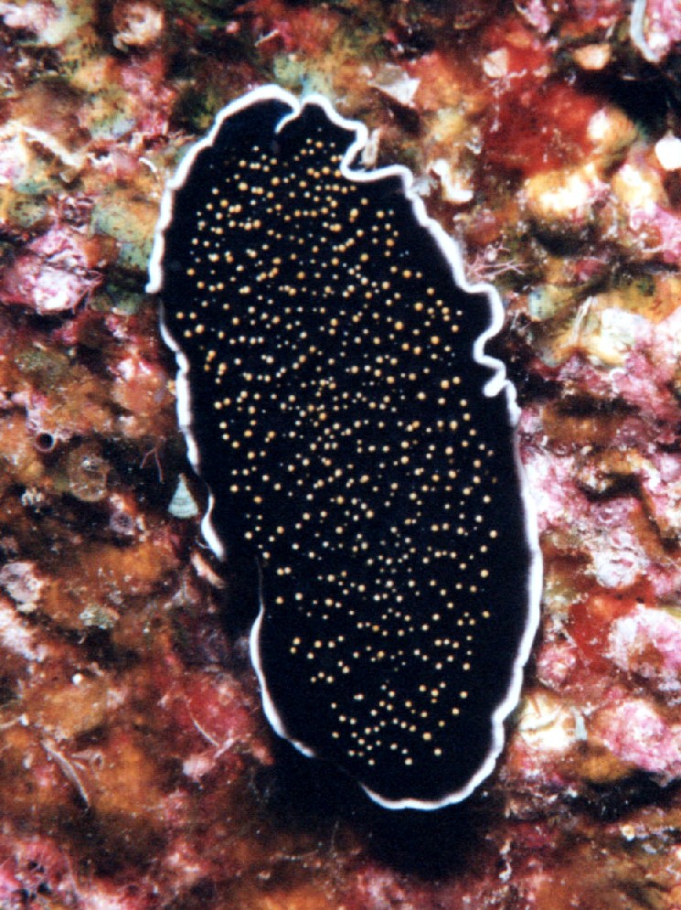 体長4cmほどの個体。よく見かけるタイプのヒラムシです。漁礁の鉄枠を上のほうに向かってせわしなく動いていました。