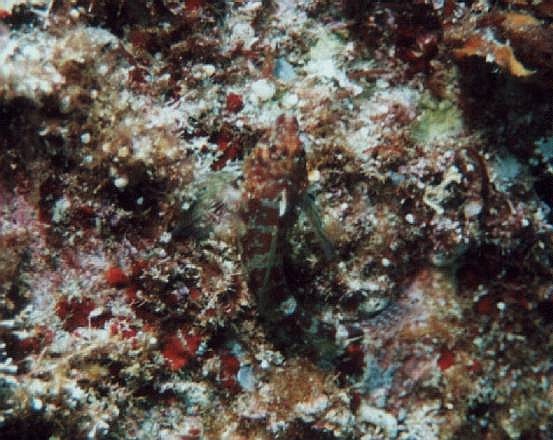 ようやくふつうのヘビギンポがいました。でも、周囲の色と同化して見にくいですね。