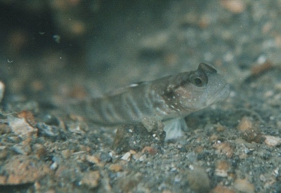 巣穴を作るハゼは、クモハゼ、アゴハゼあたりがいままでも確認していますが、このハゼは今年になって初めて確認しました。 個体数もクモハゼほどではないのですがそこそこの数がいるのですが、臆病なのか、すぐ隠れてしまってなかなか撮らせてくれません でした。まあ。透明度が悪くて、2mほど離れているものしか見つけられなかったということもありますが。ネットで調べると、かなり個体差 があるようで、また、未同定種とされているものもたくさんあり、ギンガハゼではないか、と思われるような物もありました。 瀬戸内海の生物相も少しずつ変わってきてるようで、今回アップできなかったものでも、ニジギンポやクラカケトラギスなど、いつもの ところでは初めてとなる種類も見られました。 2001. 11. 11. |
