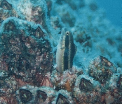 山陰では、ギンポ類の中ではこのニジギンポが定番です。これは、漁礁の支柱についている