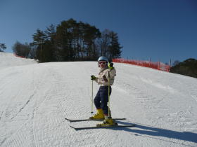| 2012年より息子(2年生)とスキーに行くようになり、今まで行った事のなかったファミリーゲレンデを探した。長野県最南端、名古屋・豊田から下道ラクラク90分R153沿いすぐ!! 近距離にある上に、なだらかな緩斜面、行き届いた施設というファミリーに絶好の条件が揃ったスキー場だ。しかも100人収容の食事処が2つあり、便利。動く歩道「ベルコン」を設置したキッズパークあり、ソリ遊びだけでも楽しめる。今回が初めてのスキーとなる息子にオークションで中古の板、靴、ストックの3点セットを購入した。オヤジのチケットもオークションで優待券を2枚ゲット15年前とはずいぶんスキースタイルも変わったもんだ。個人レッスンはこんな感じ。。。 |