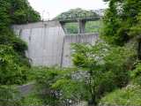| 碓氷湖は人造の湖です。本当は坂本ダムと言います。 | ダム管理事務所前から再び橋を撮影。絵葉書に出てきそうな写真。 | ダムの反対側。結構な落差で水が流れています。 |