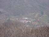 展望台から見た神津牧場の牧舎。ちいせー!