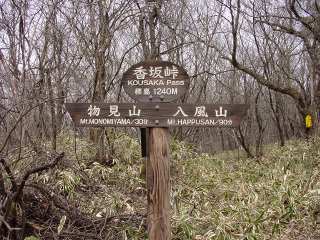 物見山の頂から下ると、香坂峠に着きます。ここは、八風山方面へ向かう道と、 神津牧場に戻る道との分岐点。今日は、時間の許す限り八風山へ行くことにしました。