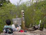 | 県が立てたのでしょうか、少し控えめな山頂の証その2。 | 山頂からの眺めその1。あまり遠くまで見えません。 | 山頂からの眺めその2。近くの山ですが、こっちもよくわかりません。 |
