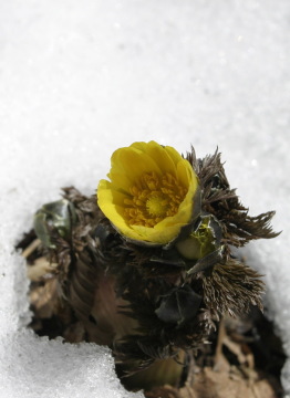 オオミスミソウです。別名雪割り草、雪の中春の訪れを告げています。