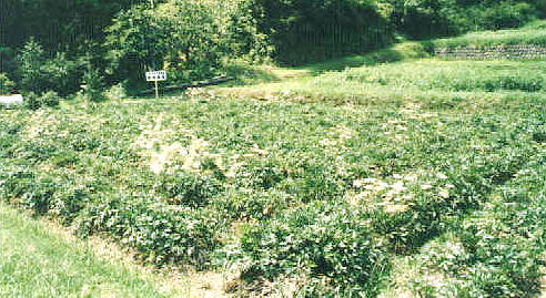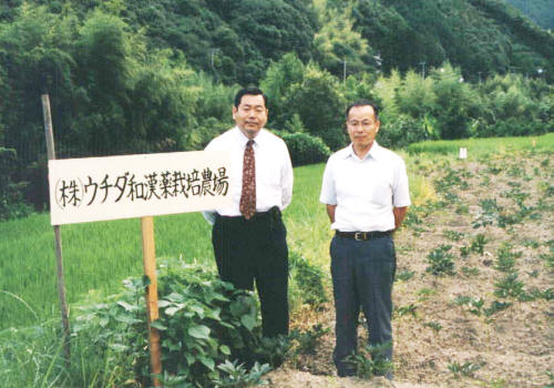 | 薬事日報 第9180号(平成11年8月20日) [日本古来の重要生薬優良種苗保存を目指して] 近畿大学植物センターと内田和漢薬が共同研究 近畿大学植物センター(センター室長中西準治氏)は、薬用植物の研究、キノコの 栽培研究、溶液培養の研究、花き類の育種と栽培研究などを主な研究テーマと している。薬用植物の研究では、ウチダ和漢薬とともに日本古来の重要生薬の 優良種苗保存のための共同研究を推進。生薬栽培における最近のトピックスとして 注目を集めている。この共同研究は、ウチダ和漢薬初代社長、故内田庄治氏の 「日本古来の生薬の優良種苗は、今のうちにぜひ保存しておかねばならない」 という強い意向を受けて数年前からスタートしたもの。 日本古来の重要生薬とされる大和種の当帰、芍薬、柴胡や、蘇葉、陳皮に重点を 置いた共同研究が進められ、着実な成果を見せている。 [大和種に重点置く] 近畿大学の植物センターは、平成五年に御坊市塩屋町の元近畿大学青踏短大跡地に オープンした。大学の研究機関的役割はもとより、地元農家の活性化を設立目的とする 同センターは、研究棟、圃場、温室からなり、総面積23000m2 を誇る。研究棟は 既存の建物を利用しており、一階は研究室、無菌室、培養室、二階は事務室、会議室 、研修室、研修員室、シャワールーム、三階は展示室になっている。第一研究室には 各種の分析機器を設置。主に薬用植物成分の分析や化学実験が行われている。 また、第二研究室は培養関係の実験室で、ここでは植物組織培養の培地などの調整を 実施している。同センターでは、開設以来、バイオテクノロジーを用いた洋ランや野菜の 種苗生産や新品種を次々に開発。バイオセンター中津(和歌山県日高郡中津村)、 御坊市内の農家との共同開発でスターチスのクローン苗の培養に成功するなど、 数々の実績を上げており、御坊周辺の産業活性化に大きく寄与してきた。一方、大学の 研究機関としても、理系から文系まで八つの学部を有する近畿大学の総合大学としての 特徴を最大限に活用。専門分野以外の研究者とも活発に交流し、植物の利用に関する 共同研究を進めてきた。中西準治センター室長は、同センターの今後の方針について 「今後も二十一世紀の農業を目指し、情報の発信基地となるような研究内容や施設を 充実していきたい」と抱負を述べる。数ある植物センターの研究テーマの中でも、薬業界 に最もインパクトを与えているのが、日本古来の重要生薬の優良品種保存を日的とした ウチダ和漢薬との共同研究だ。大和種の当帰、及び 芍薬、そして柴胡や蘇棄、陳皮の 種苗を日本各地から集め、その品質評価を行い優良な品種を選別,栽培方法についても 工夫を重ね、今では各農家でこれらの生薬が土耕栽培できるまでの技術が確立している。 「初代社長の遺志を実現するため、日夜頑張ってきました。その甲斐あって、日本古来の 本物の優良種苗の保存が実現するところまで辿り着きました」と感慨深げに語る松本克彦 ウチダ和漢薬営業部長(前生薬振興室室長)。松本氏は、数年間費やしてきた努カが やっと日の目を見た喜びをかみしめる。 [良質の蘇葉の商品化が実現] 優良種苗を原料とした記念すべき第一号製品は、「蓬莱」の商品名でウチダ和漢薬が 発売している蘇葉だ。ちなみに、「蓬莱」の名称は、中国全土を征圧した秦の始皇帝に 不老長寿の霊薬を持ち帰ることを命じられた徐福が、霊薬を求めて目指した地名に由来し、 蓬莱が日本を指す可能性が高いという説が根強い。 漢薬における「蘇葉」は、発汗、解熱、鎮咳、健胃、利尿薬として用いられ、半夏厚朴湯や 香蘇散などに配合されている。第十三改正日本薬局方では、蘇葉の原植物を 「シソまたは、その近縁植物の葉及び枝先」と規定している。 近縁植物とは、葉の両面が暗紫色で縮みの人ったチリメンジソ、上面が緑色で下面が 紫色のカタメンジソ、両面とも緑色のアオジソ、面が緑色で縮みの入ったチリメンアオジソが 挙げられ、このうちチリメンジソとカタメンジソが局方品に該当する。 また、本草や古方薬品考等の文献によって、蘇葉は古来、葉が紫色で、シソ特有の 匂いのするものが用いられてきたことが判明している。 「最近のシソは色が悪く、匂いの良いものが少なくなった」という言葉をよく耳にするが、 これは蘇葉の品質が低下してきた証だ。蘇葉持有の匂いの主成分はぺリルアルデヒドで、 現在の選品基準はぺリルアルデヒドの含有量が多く、精油含量の高いものが良質の蘇葉と されている。中西氏は「精油含量と葉の色が良質の蘇葉かどうかの決めてのポイントとなります。 ところが、精油含量が高くてもぺリルアルデヒドがほとんど含まれていない品種もあり、 単に色と匂いだけではその良否を判断することは難しいですね」と説明する。 これまで日本で流通してきた蘇葉は中国産と日本産で、その品質は一般的に中国産は 精油含量は高いがぺリルアルデ