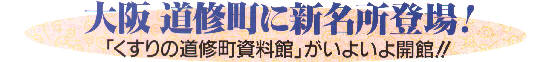 | 10月7日、大阪道修町にくすりの道修町資料館が誕生 しました。(平成9年) 道修町にある少彦名神社(神農さん)には、およそ340年 前からの、薬種中買仲間(くすり商人の団体)の「道修町 文書が保存されてきました。道修町文書からは、道修 町をはじめ大阪の経済史にも通じるいろいろなことがわ かってきました。この非常に貴重な歴史的資料を広く一 般に公開しよう、活用してもらおう、そんな思いが当資 料館設立のきっかけになりました。 くすりの道修町資料館は、道修町文書や道修町に関わ る様々な資料・パネルを展示し道修町が"人々の生命 と健康を育む町”として、「そこに行けば道修町の営みと あゆみ、そして将来への展望がわかる」ことはもちろん、 くすりや道修町とも切り離せない神農さんなどを紹介し ています。 また資料・ビデオ・図書の閲覧室や道修町文書の収蔵 庫も併設しています。 どうして道修町はくすりの町なの?へぇ一、道修町"っ てそうなんだ。そんなところがわかってもらえる資料館 です。ぜひご覧ください。  |