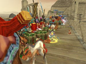 2006/04/07 飽くことなくシルクロードオンラインです。 本日ギルドレベルが4になりました。 ギルドレベルアップ直後の風景(ギルドメンバーの有志集合写真)今日はこの立会いの為に会社をちょっぴり早く上がってきた訳ですよ。 え?人生に黄色信号?何を言う、俺の人生は毎日がオールグリーンだよ。 というわけで、レベル4になり新規勧誘強化月間ということで、マヒロさんもメンバー勧誘権限を付与されましたのでギルド新規メンバーを募集しております。 大刀専門のギルドですのでその点よろしく。 新しく始める方は、KOUGAシャードにキャラクターを作成してください。そうしないといつまで経ってもカッコイイマヒロさんには会えません。 2006/04/01 今日は会社に人が少ないと思ったら、仕出し弁当で何人か食中毒になったらしい。 いったいなにをしているのやら。 誰が弁当食ったとか食わないとか、おかずの何を食ったとか食わないとか、そんな議題で真面目に討論できる大人って立派だよね。 というわけでまた検便です。月曜日には立派なうんこをもって会社に行かなければなりません。 さて。 そんな今日は同盟ギルドイベントの「ドロケイ」でした。小学校のころやったでしょ?ドロケイ。 それをオンラインゲームの中でやったりします。 開始前の準備風景逃げたり隠れたり戦ったり、なかなか楽しいです。 もうすこしルールがこなれてくると、定番イベントになるんじゃなかろうかと思います。 2006/03/21 最近、胸がバクバクいうようになったんですが、これって、ときめいているのかな?青春かな?毎日がドキドキかな? まあ、ドキドキもなにも、今日は弁当買う以外で外出していない訳ですが、WBCの野球見ていたら九回辺りで胸がバクバクして死ぬかと思った。王監督より先にマヒロさんが死神的なものに胴上げされてあっちの国にいくかと思った。 っていうか、俺ってもうそんな歳か?おい。 以下:あくまでもおまけ。 昨日の夜はシルクロードオンラインで同盟ギルドでキャラバンでした。 3月20日はタクラマカンアップデートでしたので、高レベルの盗賊プレイヤーの方々がタクラマカン砂漠に行ってしまったであろう事を期待しつつ、出発です。 長安出発。東洋的な雰囲気がいいよね。この黄色く光って走るおっちゃんはマヒロさんの所属するギルドのマスターです。 高レベルの方々はハンターになって商人隊列を護ります。 敦煌出発。ここまでは、何事もないのです。死ぬ人もいないし。 ここからが、大変ですよ。死んだら基本的に自己責任です。同盟キャラバンとはいえ厳しいのです。 盗賊に襲われまくるキャラバン一行。星5(高難易)の交易をする人がいたからなのか、湧き続ける盗賊の皆さん。 黒い笠をかぶっているのが盗賊です。 ここにいたっても盗賊が出現。結局最後まで襲われ続けて先導役さんは何度も倒れてました。 先導役は大変だ。 そろそろ一人くらい、「マヒロさんに会いたくて私も始めましたー、よろ〜」とか言って来る、進学が決まってやる事のない春休みの女子学生が登場してもいいと思う。 |
