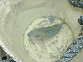 朝からの雨もやみ、今度は海釣りに挑戦しました。見てのとおり低い柵しかなくて、見てるほうはドキドキのハラハラ状態。