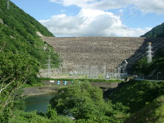 無造作に石を積み上げて作られたようなダム(ロックヒルダム)
