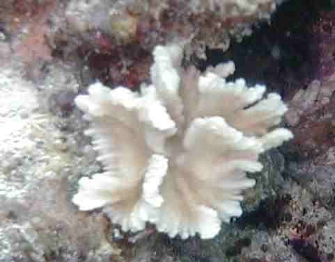 サザナミサンゴも被覆状に成長することが多いが縁はくっつかずいくらか立ち上がります。