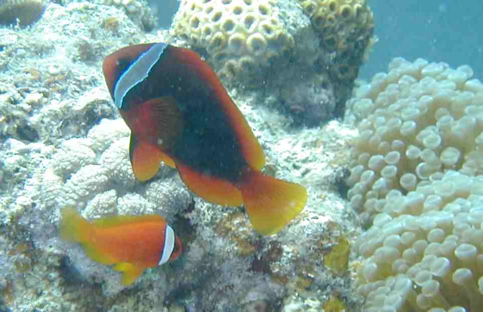 威嚇してくるクマノミ、ご存じの通りクマノミはメスが攻撃的です
