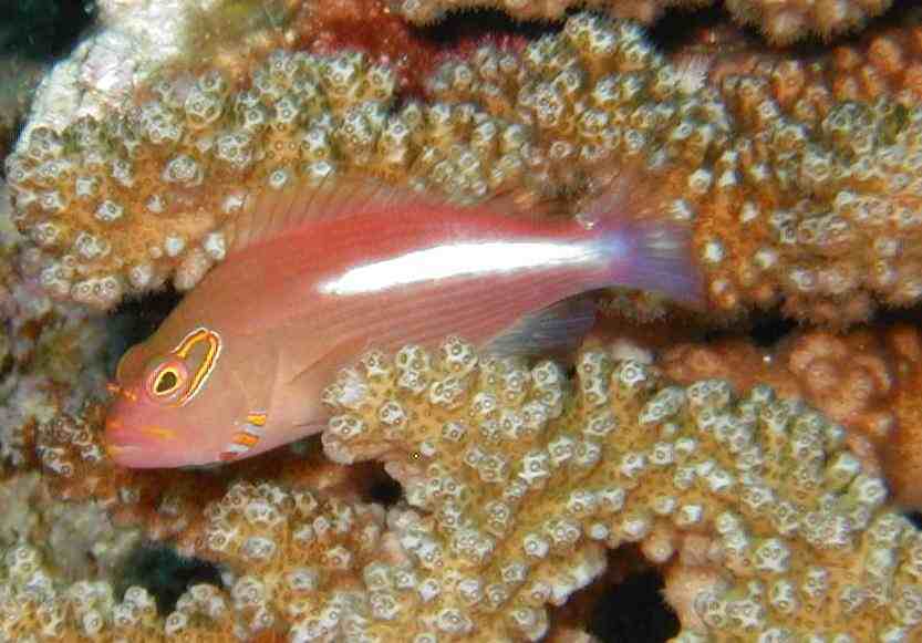 岩の穴を出たり入ったりしているクレナイニセスズメ、ニセスズメ類の行動は水槽でも自然界でも同じです。