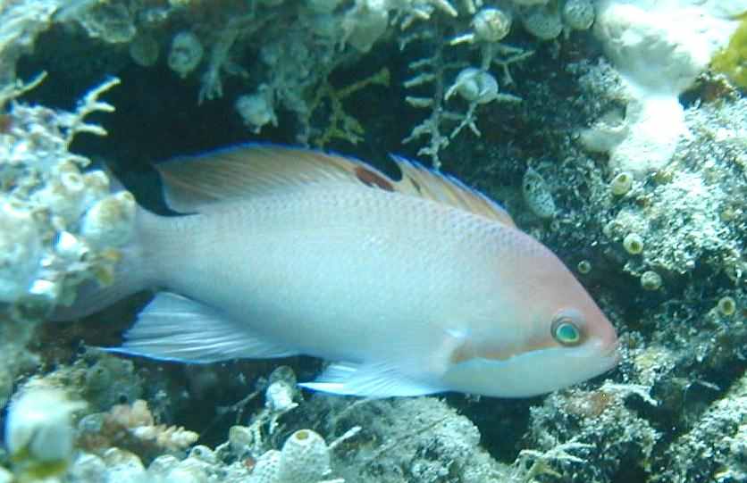 ある根に沢山ケラマハナダイが付いていました。ハナゴイと違って離れて空間に泳ぎ出さず、特に雄は岩の隙間を泳いでいました。