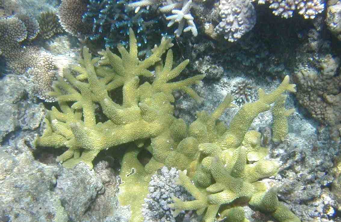 写真ではやや黄色みが強くなりましたが、肉眼では結構蛍光グリーンのミドリイシでした。