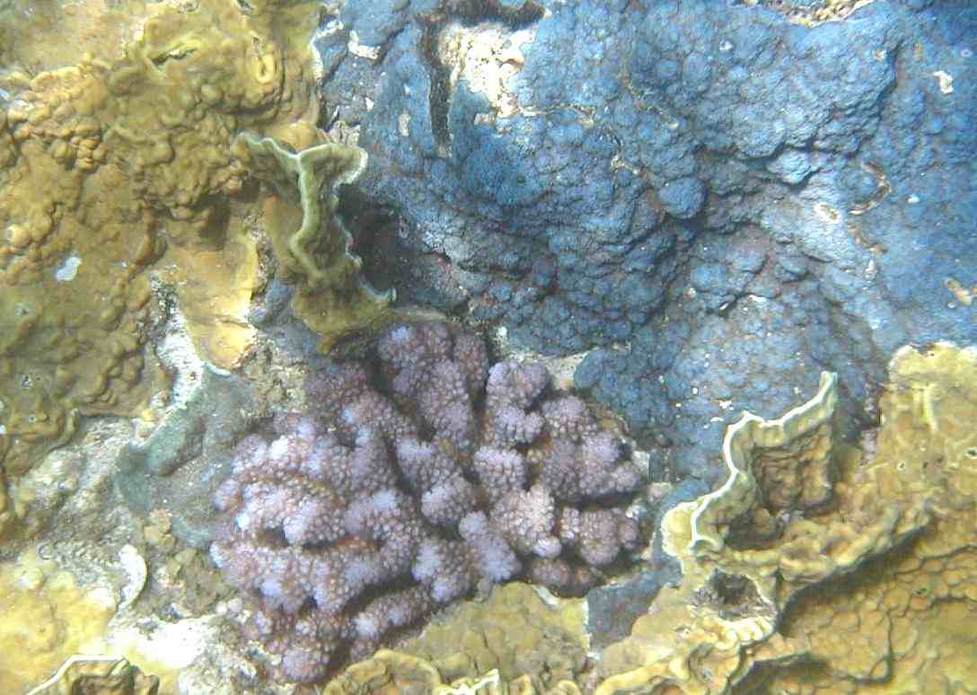 十分な光のおかげでしょう、先端部に色素の濃いサンゴも所々にありました。
