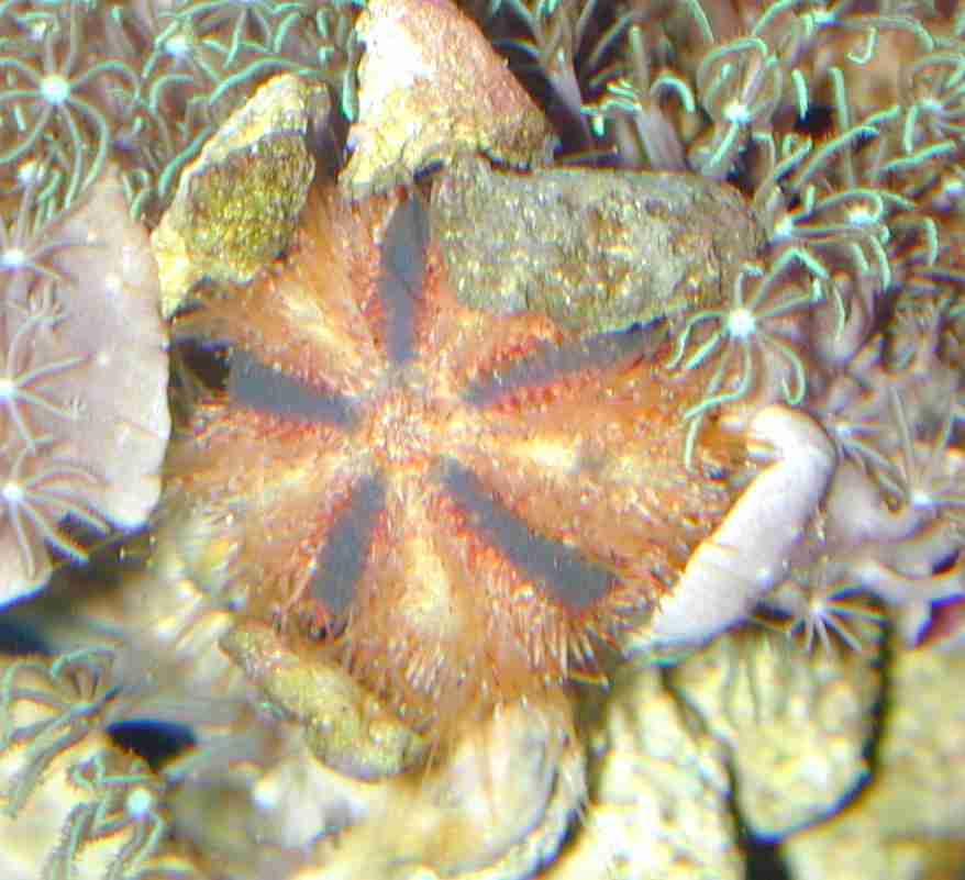 良く藻類を食べ、その割には石灰藻を削らないので、リーフアクアリウムには勧められるウニ。