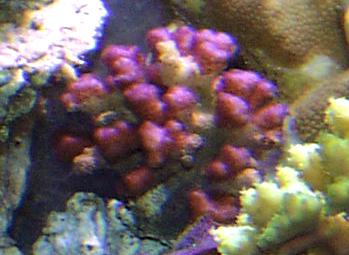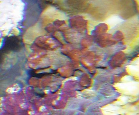 1)到着時、1998年11月30日、もとはピンクがあったというが、従来式濾過で完全に茶色になったハナヤサイサンゴ