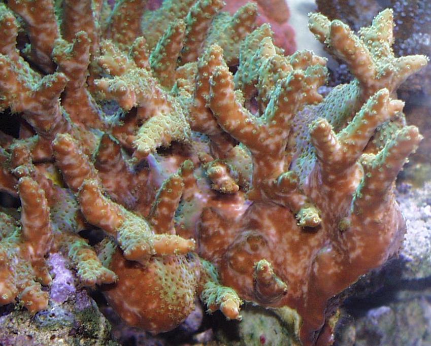 RTNはミドリイシ、ハマサンゴなどの小ポリプに発生する感染症です。ミドリイシの中でも、オヤユビミドリイシや、ホソエダミドリイシなどの枝の短いタイプが弱いようです。アメリカなどでは、しばしば以前より話題になっていたようです。THE REEF AQUARIUM Vol.2 Page442〜449に載っています。