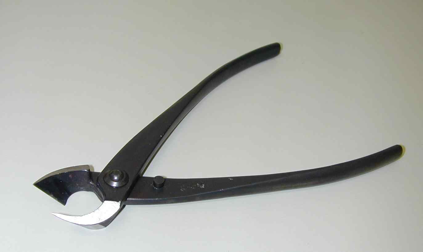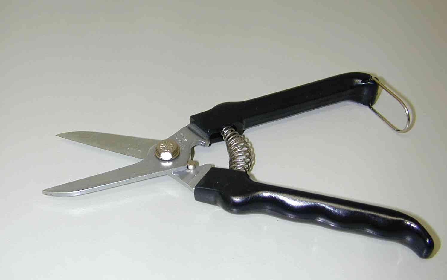 瘤切り用選定バサミには刃がヤットコ型(毛抜きのような型)もありますが、これは長い枝を切るときハサミの支点が邪魔になります。