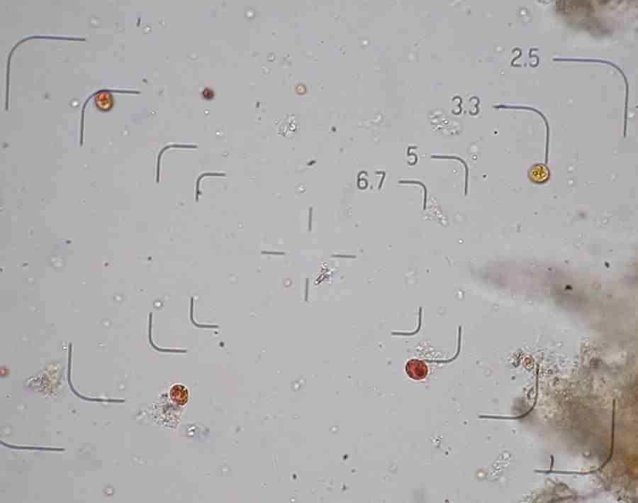 Table1のbは球形藻類の100倍像です。このように生きている藻類も数多く視野に認められました。スキマーで多くの浮遊性藻類を集めていると思われます。