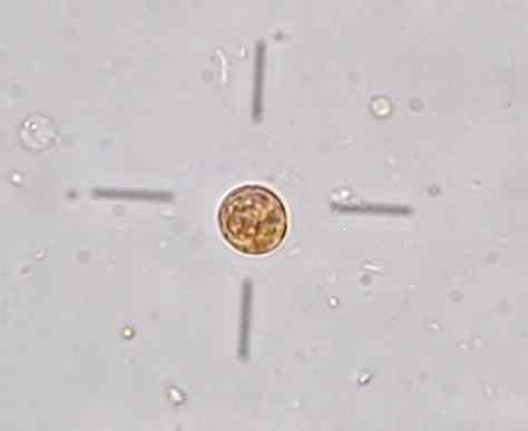 cは球形藻類の400倍像です。種々の大きさ、形があります。色が薄いのは小さい傾向があります。