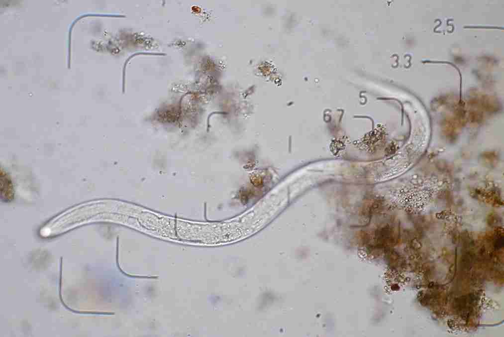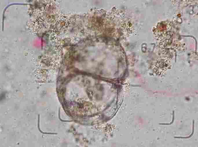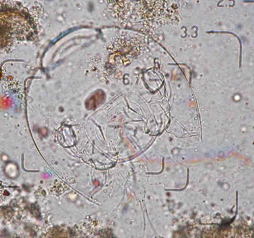 そのかわり、DDで特徴的なのは、BSやHSAで認められなかった生きている大型動物(といっても100〜1000μm)でした。cは線虫で数視野に1匹はいて、動き回っており、ほとんどが生存していました。