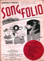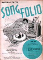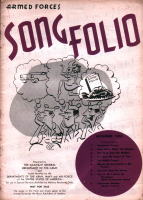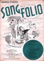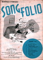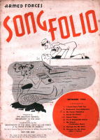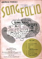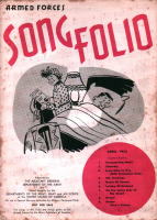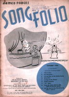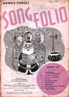 | これは「ARMED FORCES SONG FOLIO」という非売品の冊子で、所謂進駐軍の娯楽班とで もいうんでしょうか(ENTERTAINMENT BRANCH SPECIAL SERVICES SECTIONというスタ ンプあり)、そういうセクションに配布されたもののようです。クリスマスに関係したのは、赤い 字で年・月が書かれた3冊だけですが、珍しいものでもありますし、私の持っている11冊の表 紙だけひと足早くご紹介します。毎号9曲くらいの楽譜と曲を演奏する時に使用する台本とい うか、寸劇のシチュエーション等の指定が書いてあります。 |