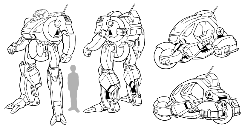 バイク形態にフードを付け加えることにより、操縦者を包み込む変形を簡略化。元デザインや私の決定稿と比べてコクピットに余裕があります。
